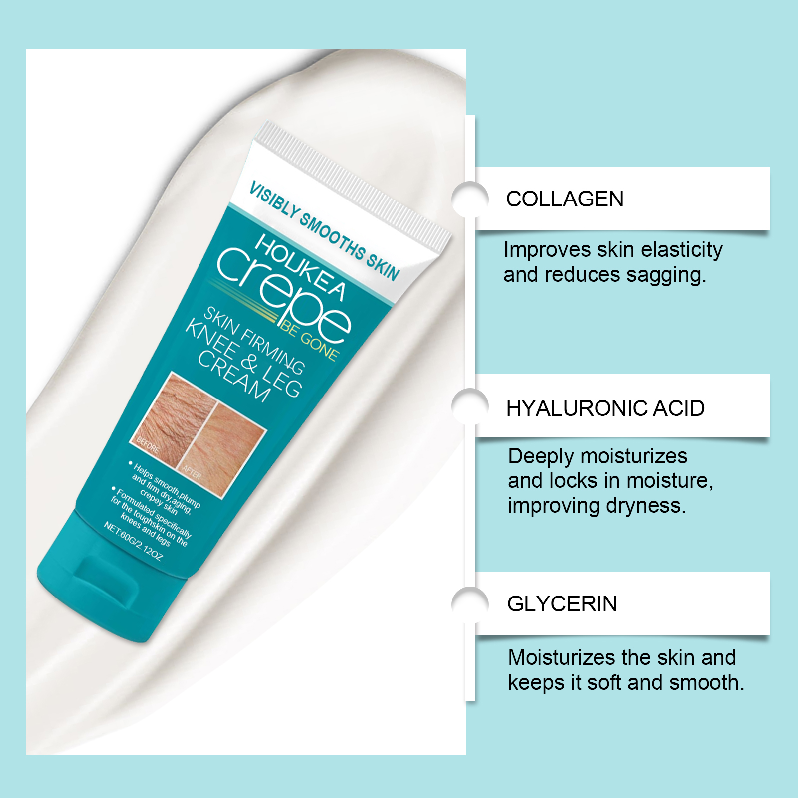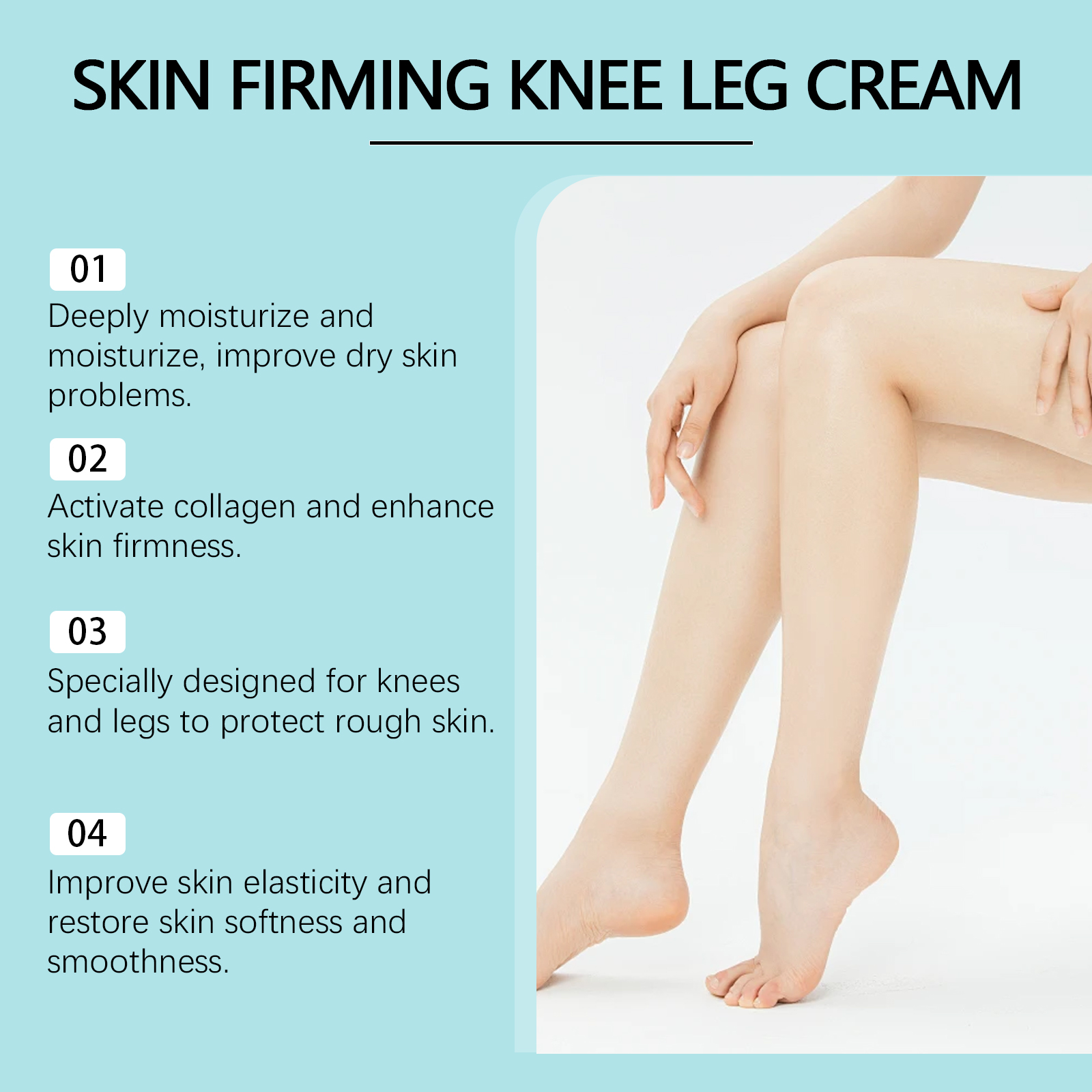 Our skin care cream contains collagen, hyaluronic acid and glycerin. It can activate the skin to repair itself and enhance skin elasticity and firmness. Its application method is simple: 1. Thoroughly clean and dry the skin; 2. Apply appropriate amount of this product evenly on knees, legs and other parts of the body. 3. Massage gently to promote better absorption. Combined with a variety of nutrients, it deeply moisturizes dry skin and improves rough texture.