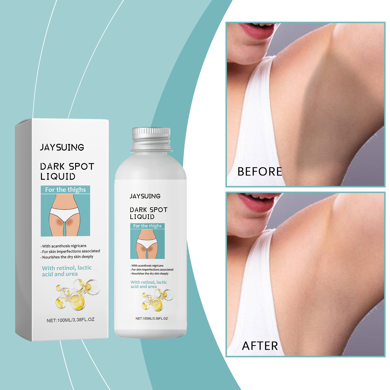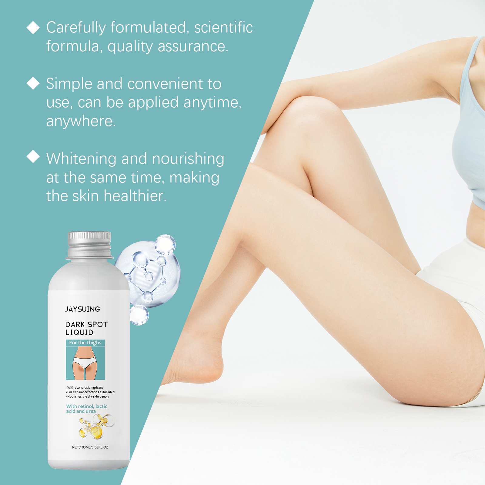 Our leg cream contains lactic acid and retinol. It can deeply nourish and repair damaged skin for a natural glow. Its application method is very simple: clean and dry your body skin, take appropriate amount of this product, evenly apply to armpits, inner thighs, buttocks and other private parts of the skin, gently massage until absorbed. And can be designed for beautiful legs, farewell dull and brighten the skin.